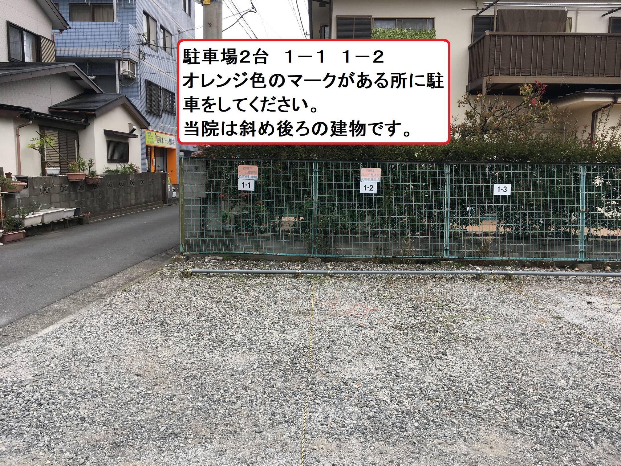 当院の建物から道路を挟んで斜め前方の駐車場に2台のスペースがあります。